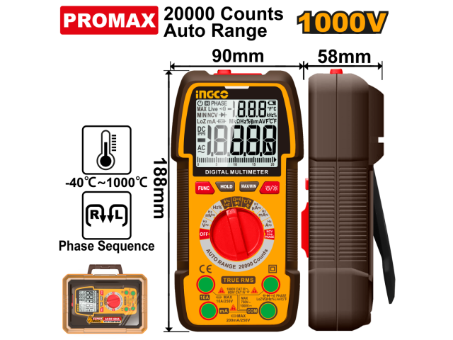 TESTER MULTIMETRO DIGITAL 1000V DC/AC INGCO DM410003