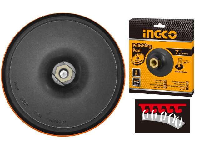 Diámetro: 180 mm Material: PP Tuerca M14x2 Respaldo Tipo velcro Para gorro de lana y papel de lija Embalado por caja de color