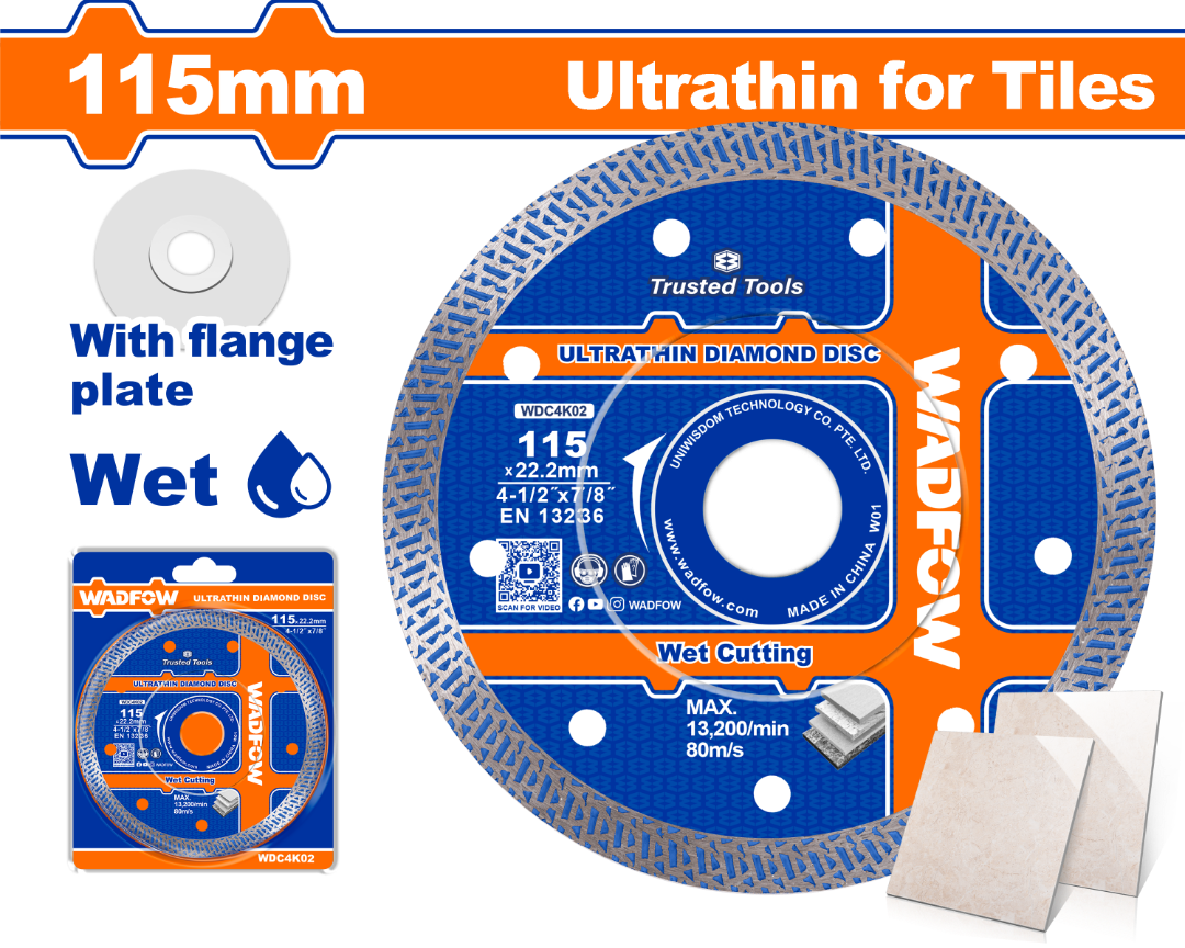DISCO DIAMANTADO ULTRAFINO 4 1/2"" X 22.2MM USO UNIVERSAL WADFOW