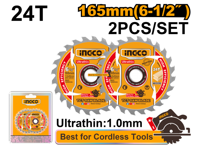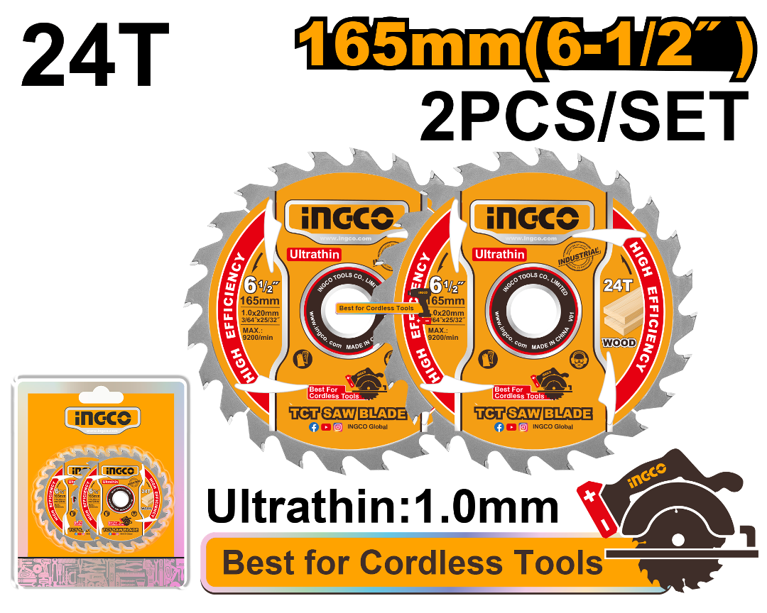 SET X2 DISCO 24 DIENTES 165MM 6 1/2" ULTRA FINO INGCO TSB1653