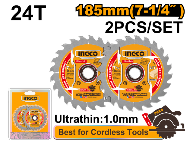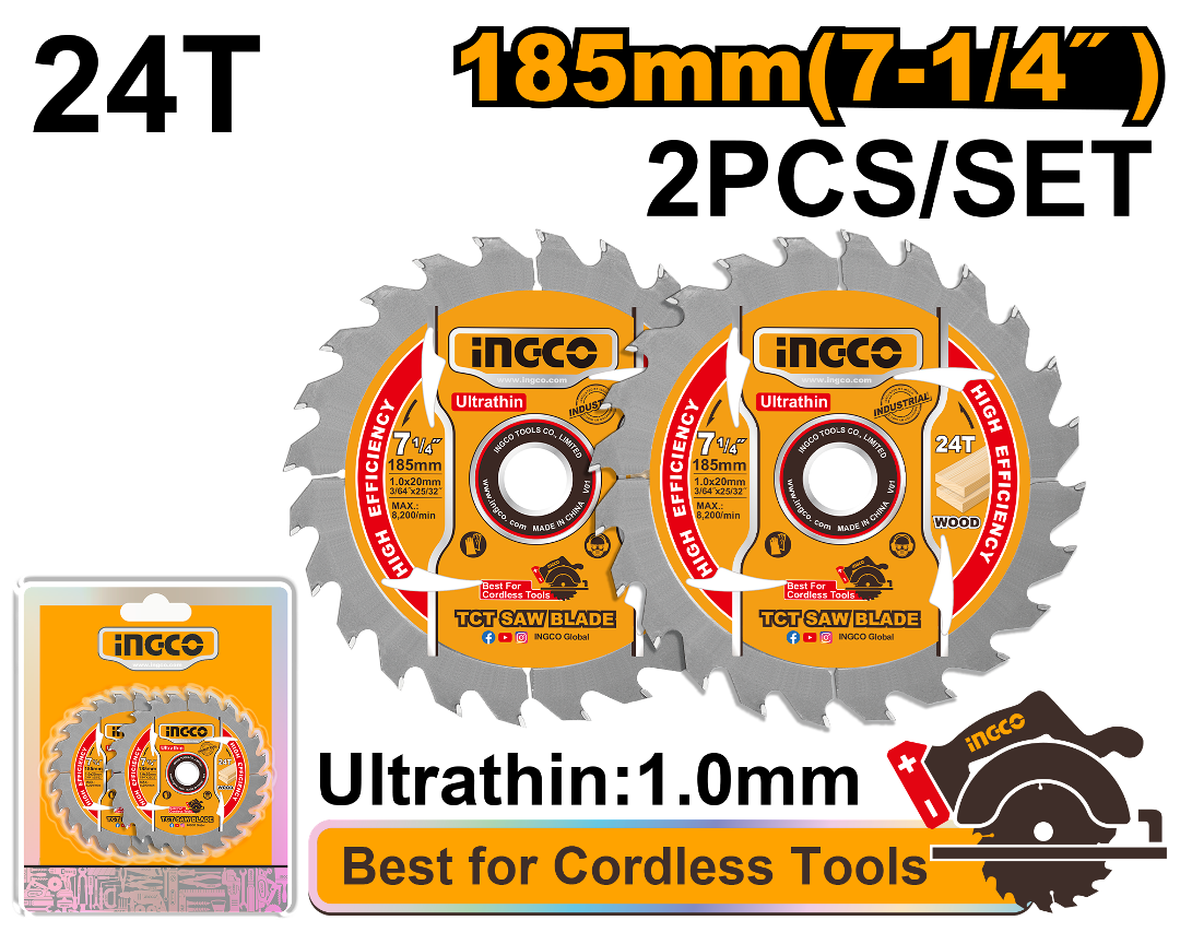 SET X2 DISCOS P SIERRA CIRCULAR 7 1/4 ULTRAFINOS 24D INGCO TSB1853