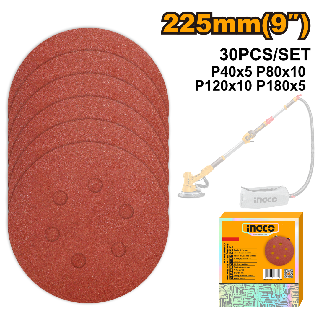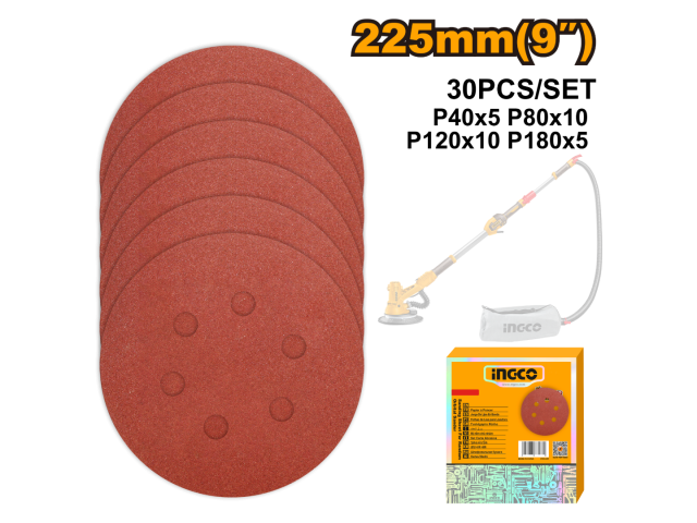 SET X 30 LIJAS 9" 225MM PARA LIJADORA ORBITAL INGCO AKRS225030