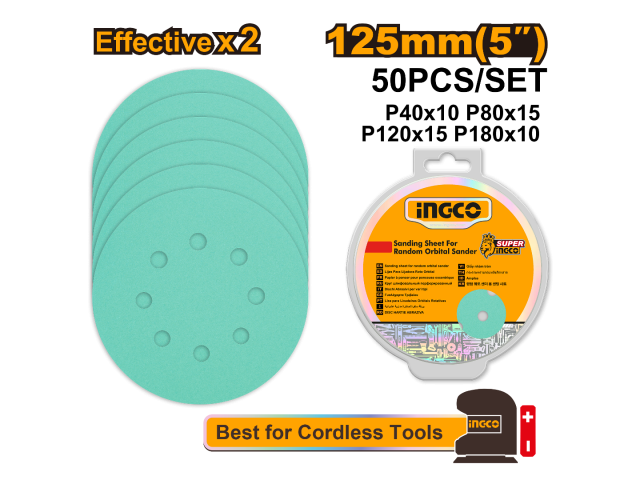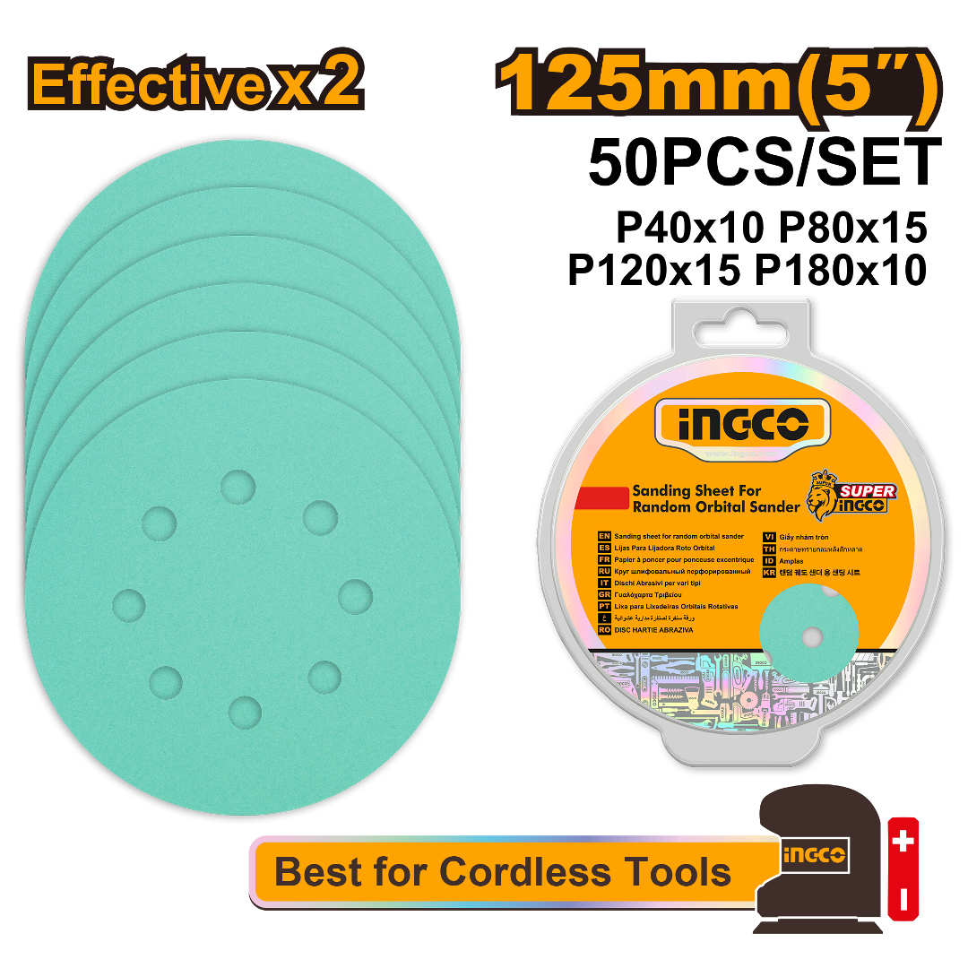 SET X 50 LIJAS 5" 125MM PARA LIJADORA ORBITAL INGCO AKRS125050