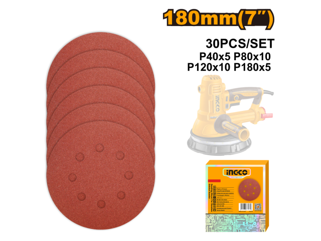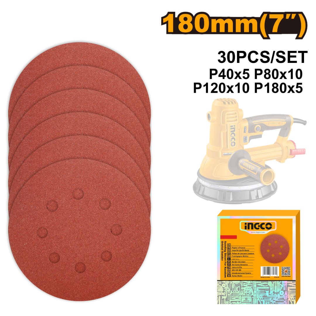 SET X30 LIJAS 7" 180MM P/LIJADORA DWS10508 ROTO ORBITAL INGCO AKRS180030
