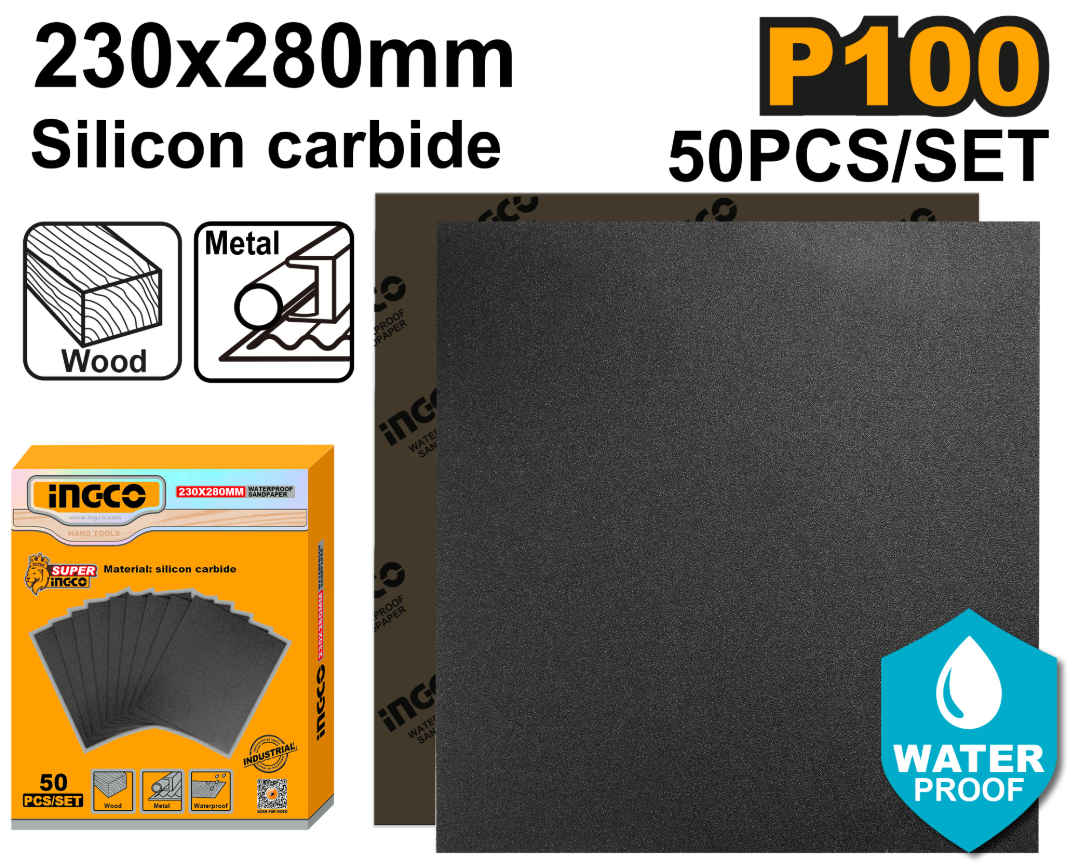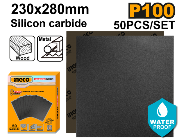 SET X50 LIJAS AL AGUA P100 230x280MM INGCO AKHS010016