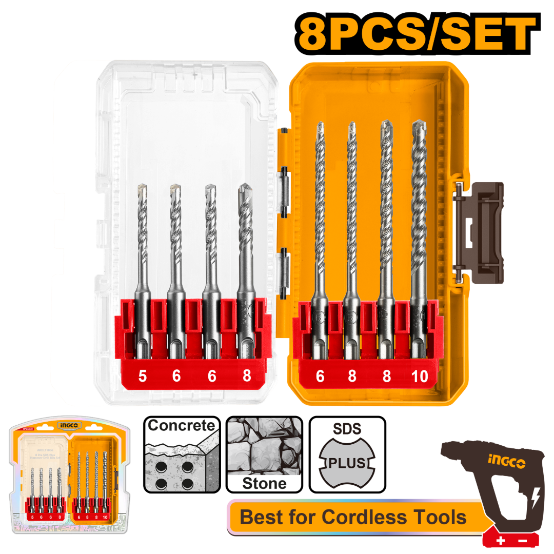 KIT 8PCS MECHAS PARA ROTOMARTILLO SDS PLUS INGCO AKDL11806