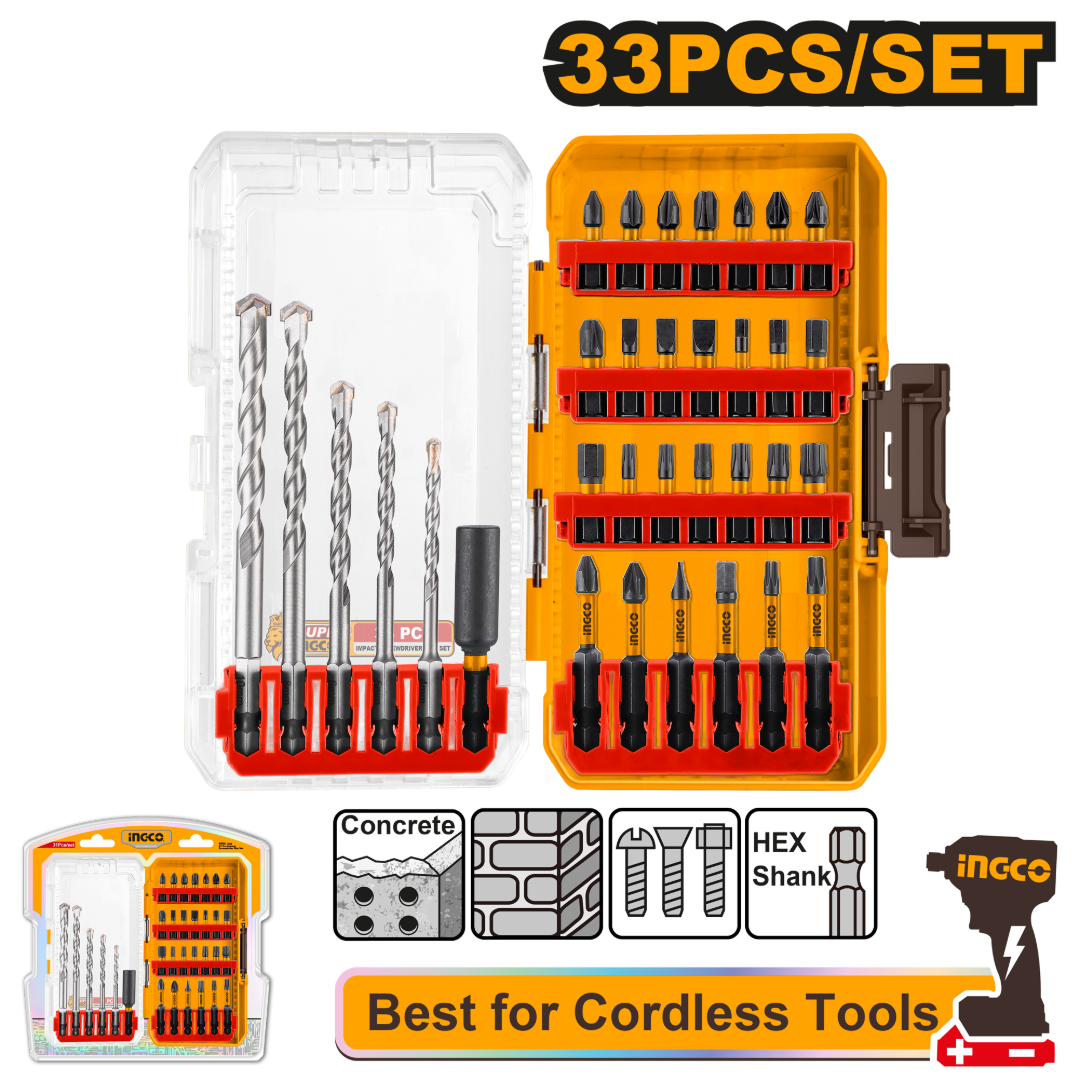 SET X33 PCS MECHAS MAMPOSTERIA + PUNTAS IMPACTO INGCO AKDL11303