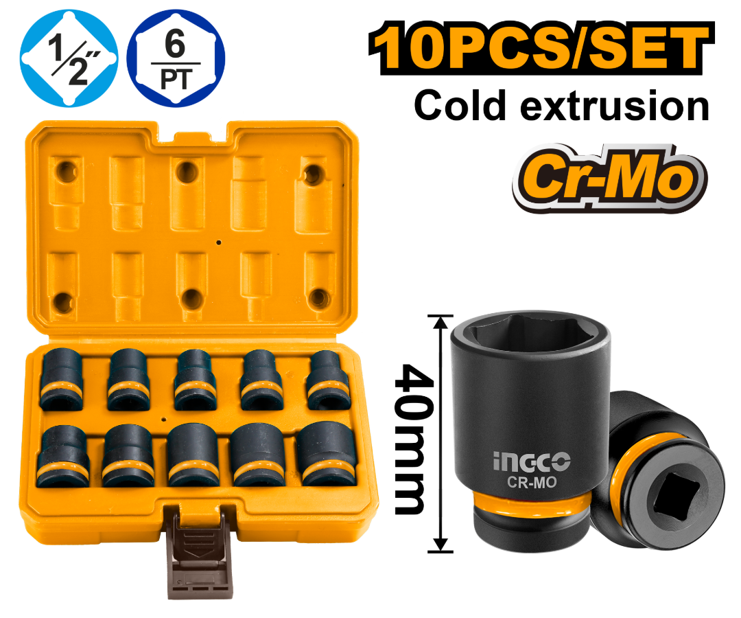 JUEGO 10 DADOS DE IMPACTO 1/2" INGCO HKISSD12101