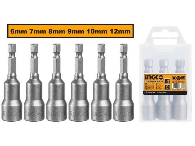 JUEGO 6 DADOS MAGNETICO CON ENCASTRE 1/4 PARA TALADRO INGCO AMN65061