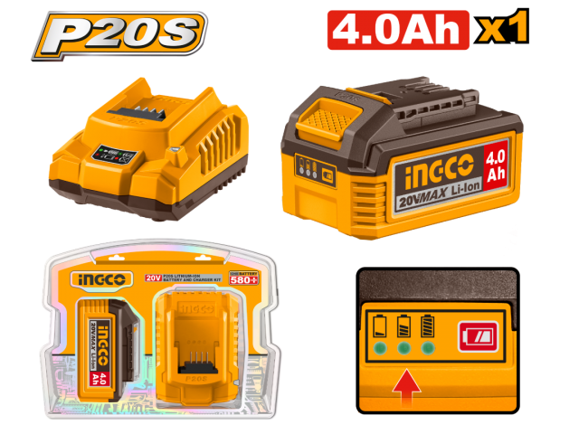 SET X1 BATERIA 20V 4.0AH + 1 CARGADOR INGCO FBCPK1012