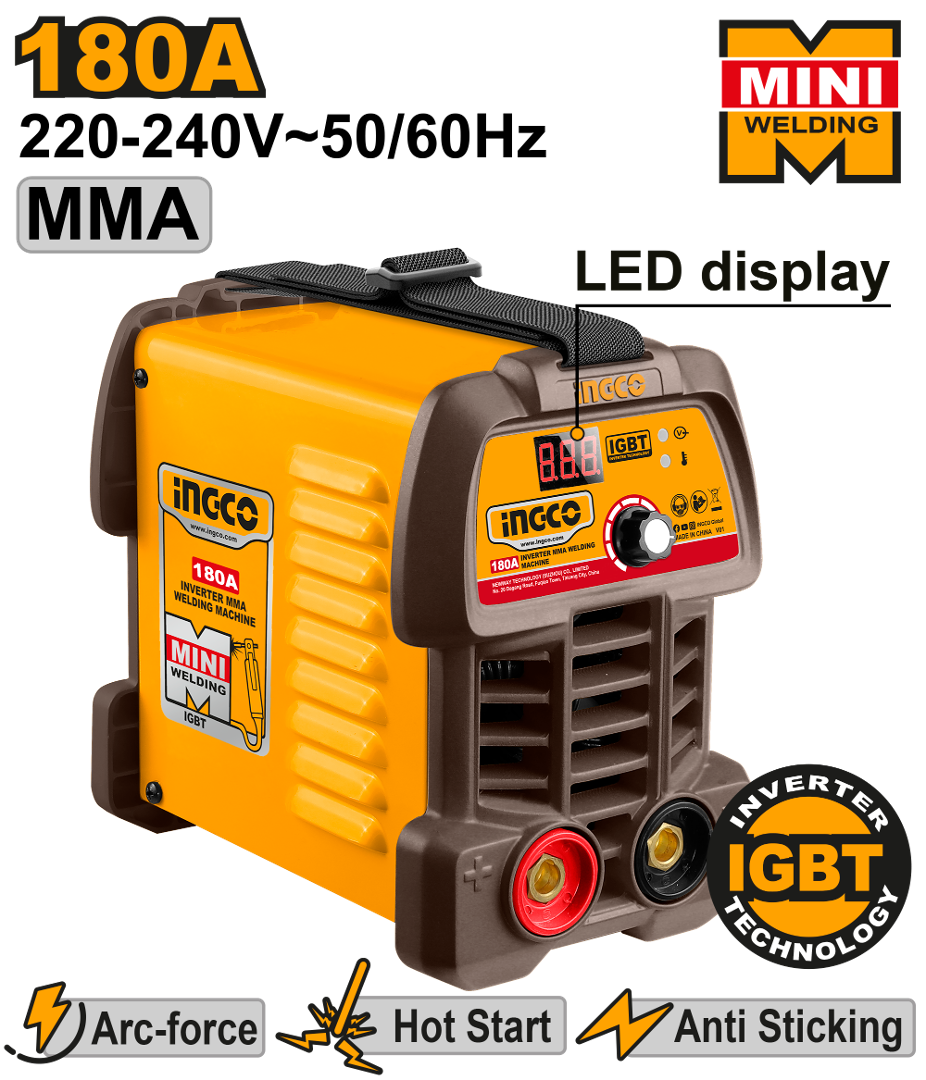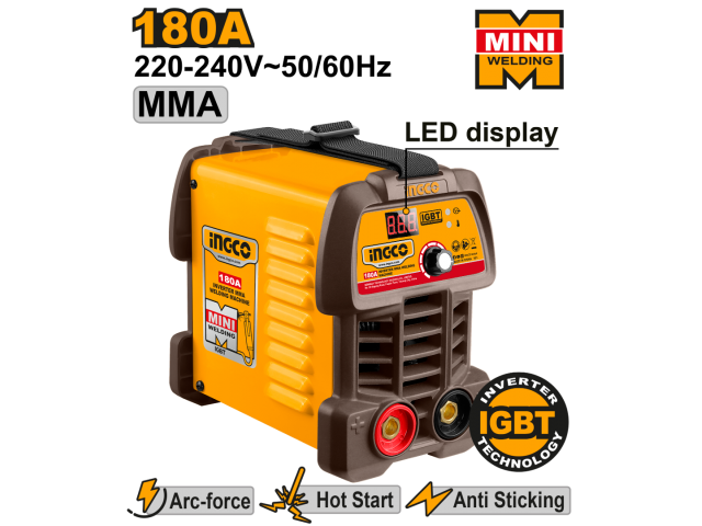 SOLDADORA INVERTER MINI MMA 180 AMP DISPLAY LED INGCO MMA18049