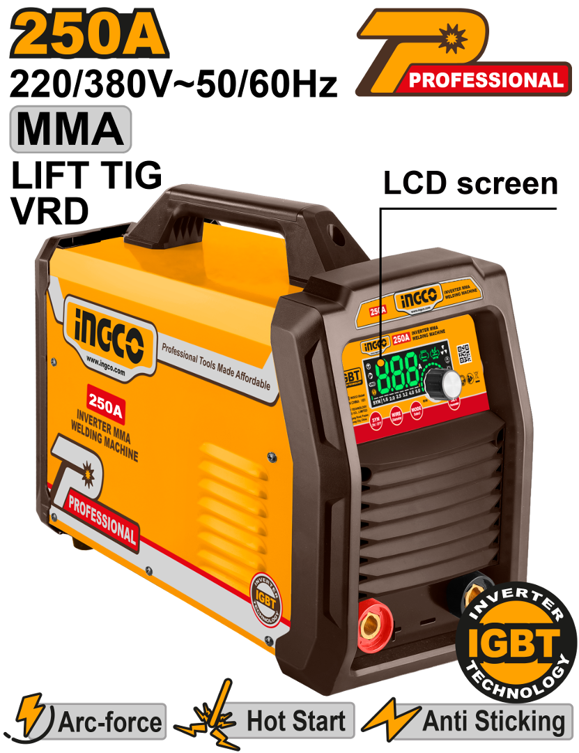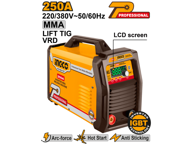 SOLDADORA INVERTER MMA TIG 250A LED DISPLAY INGCO ING-MMA25079