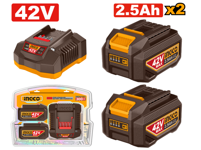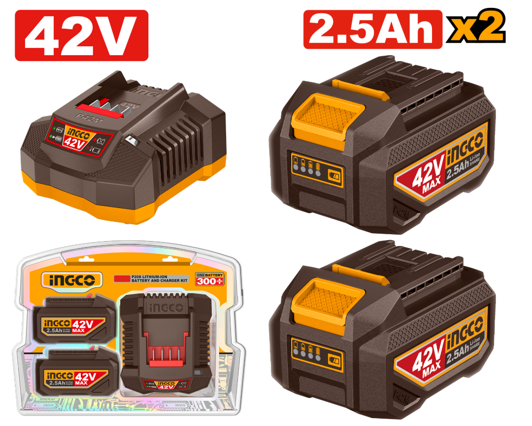 SET X2 BATERIAS 2.5AH + 1 CARGADOR 42V P42M INGCO FBCPM25221