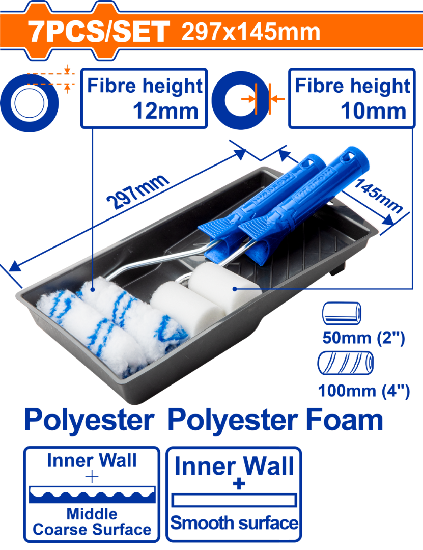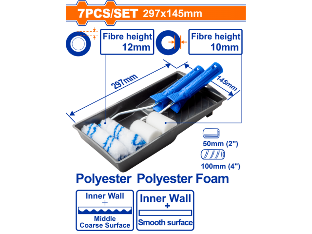SET RODILLOS CILINDRICOS + BANDEJA 7 EN 1 P/PINTURA INTERIOR WADFOW WCB3H71