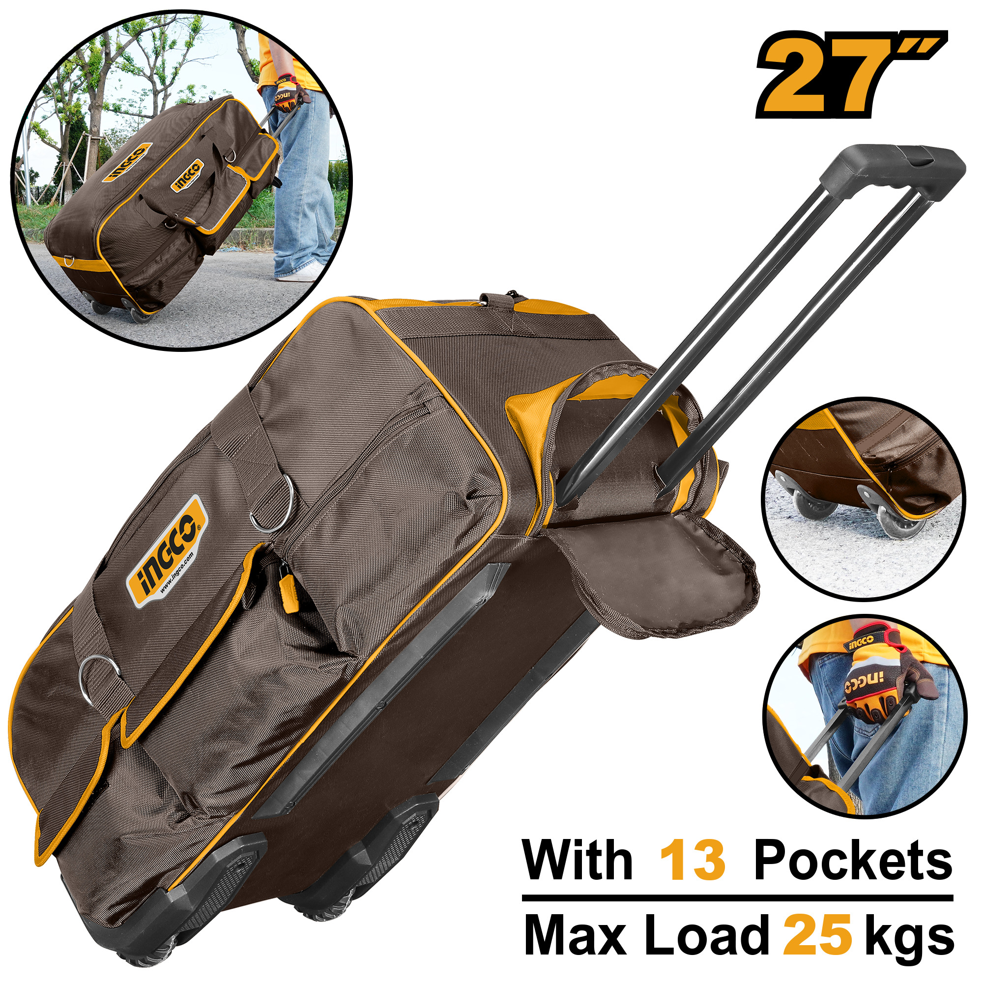 BOLSO VALIJA ROLLING RIGIDO 27" PORTA HERRAMIENTAS INGCO HRRTB2715
