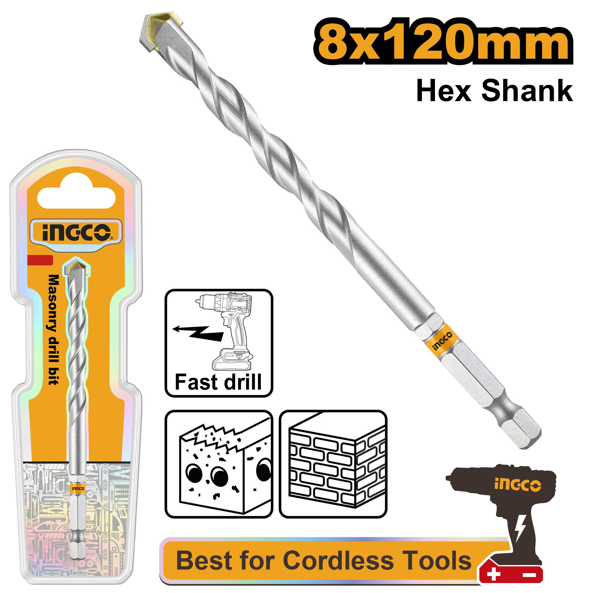 MECHA MAMPOSTERIA 8X120MM ENCASTRE HEX. INGCO DBM2210812