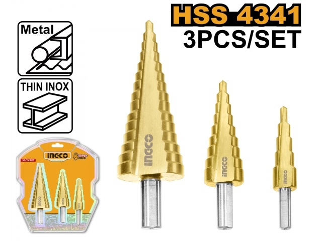 SET X 3 MECHAS CONICAS HSS4341 INGCO AKSDS80401
